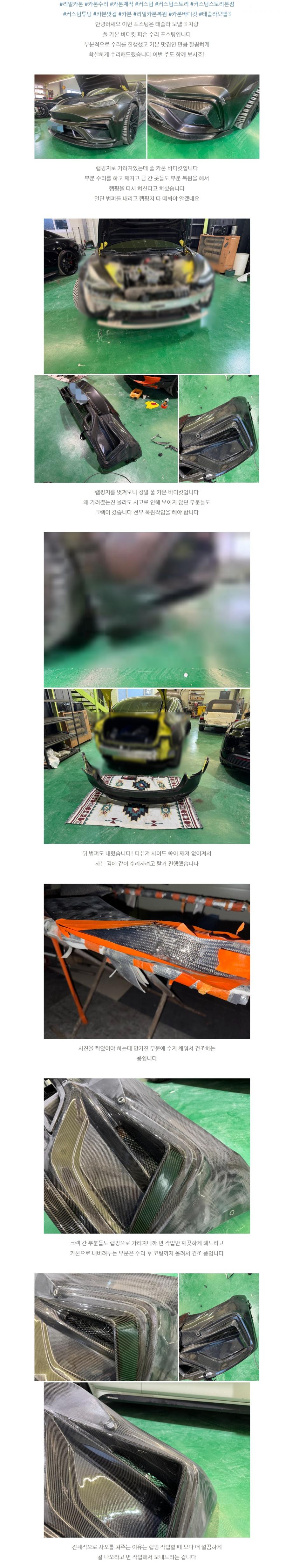 테슬라 모델 3 리얼 카본 바디킷 파손 수리