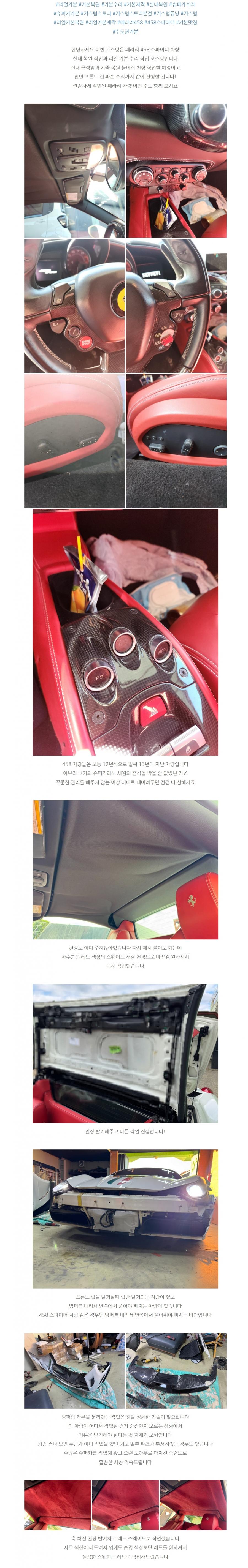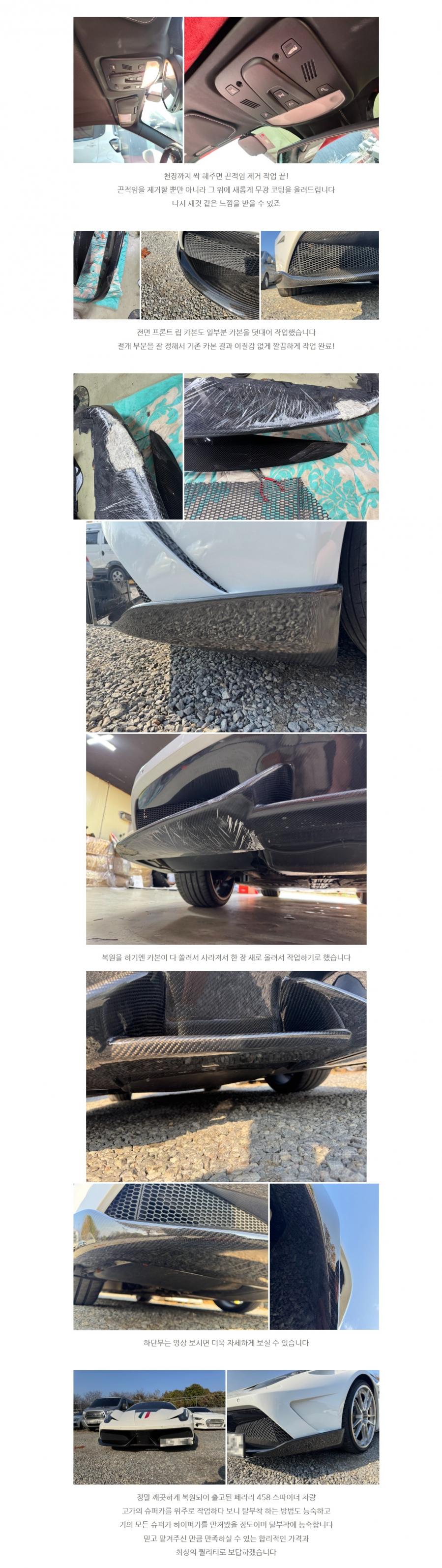 페라리 458 이탈리아 리얼 카본 수리 + 실내 복원